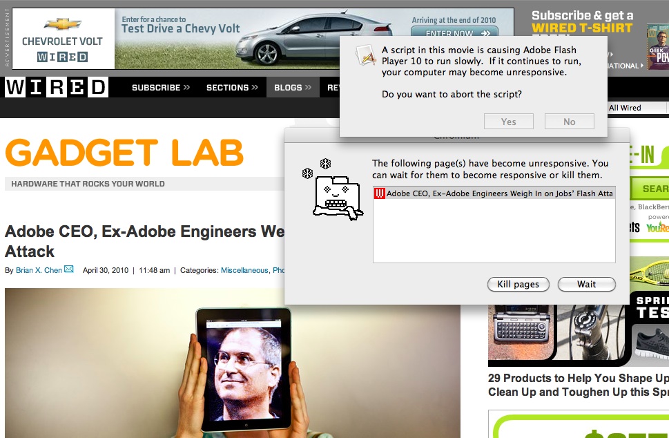 "Luh was also formerly employed by Apple on the Final Cut Pro team. He said that because Adobe’s Flash Packager didn’t use Apple’s toolchain to create apps, the resulting code would not work well on an iPhone or iPad. A simple "Hello World" app created in Flash and compiled to work on the iPhone would take up 8 MB, he said, when it should be no longer than a few KB. (Wired.com verified this figure with two other developers who have tested the iPhone Packager tool in CS5.)"